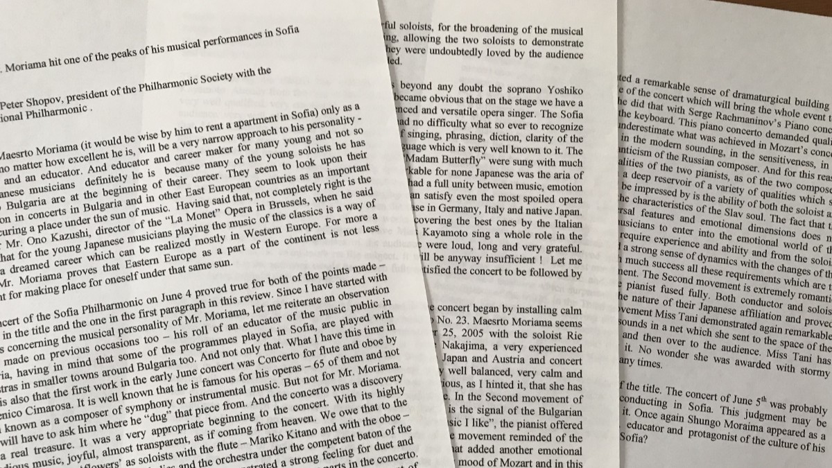 国立ソフィアフィル、フィルハーモニー協会会長 ピーター・ショポフ(博士)による批評 (2006年ブルガリア・ソフィア国際音楽祭にて国立ソフィアフィルハーモニー管弦楽団とラフマニノフピアノ協奏曲第2番を協演)
